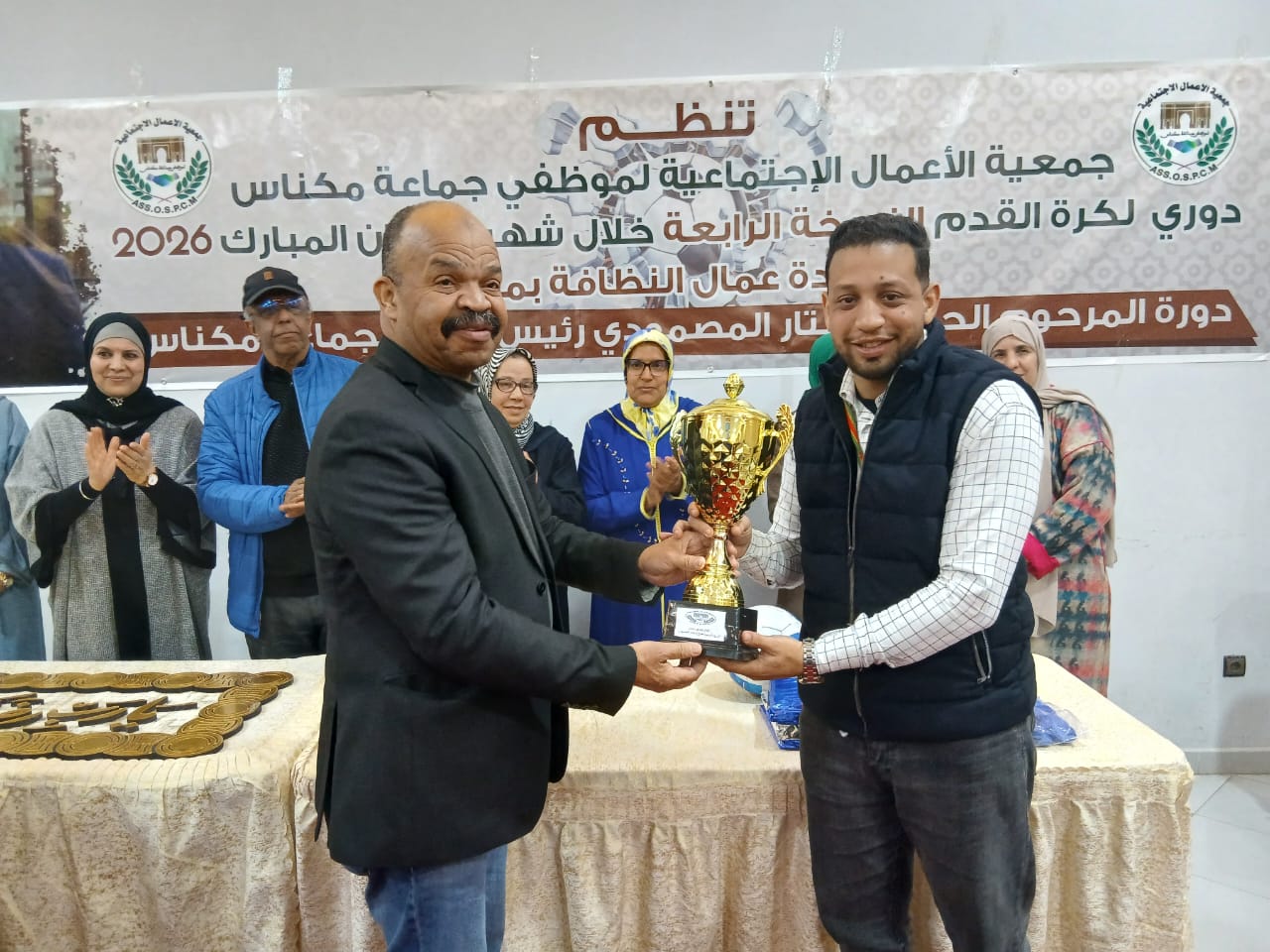 أسدل الستار، مساء الجمعة 14 مارس 2026 الموافق لـ23 رمضان، على فعاليات النسخة الرابعة من دوري الكرامة لكرة القدم لرجال النظافة بمدينة مكناس، دورة المرحوم الحاج المختار المصمودي رحمه الله، والذي نظمته جمعية الأعمال الاجتماعية لموظفي جماعة مكناس، في أجواء احتفالية طبعتها الروح الرياضية وقيم التآخي التي تميز شهر رمضان المبارك.
